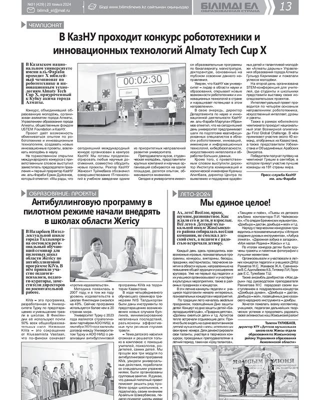 "Білім Ел"республикалық газетінде жариялау